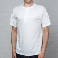 Inspiriert von amerikanischer Vintage-Kleidung ist "Lot 4601 Henley" mit seiner klassischen Knopfleiste ein Basic der besonderen Art. Der spezielle Jersey wird auf seltenen Rundstrickmaschinen aus den 1920er bis 1960er Jahren in Wakayama, Japan, hergestellt. Unterschiedlich dicke Baumwollgarne werden unter geringer Spannung zu einem lockeren, strukturreichen Jersey verarbeitet. Heute gibt es nur noch etwa 400 dieser Webstühle.