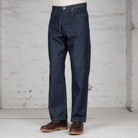 Gefertigt aus orSlows eigenem 12oz Denim, der nach Vorbildern aus den 1930er-Jahren entwickelt wurde. Der Stoff hat eine weiche, lebendige Struktur und zeigt die charakteristischen Unregelmäßigkeiten klassischer Webtechniken. Vernäht nach originalen 1930s-Spezifikationen – ein Stück, das den Geist alter Denim-Kultur in die Gegenwart trägt.