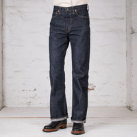 The "SC42321 Boot Cut" from SUGAR CANE is made of 14 oz selvedge denim, woven on traditional looms and sanforized for a stable fit.