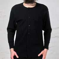 The "Button Front Amish Under Wear" cardigan is based on the classic underwear of the 1920s. BLACK SIGN uses an extra heavy cotton jersey that is brushed on both sides for their version. This means that the cardigan can be worn in many ways as a knitted jacket or as an additional layer on cold days.