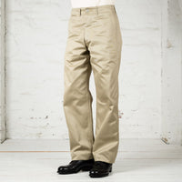 These trousers are a faithful reproduction of the classic chino worn by the USAAF during World War II. With their outstanding authenticity, Buzz Rickson's remains true to tradition—and precisely to the original military specifications of the era. A tribute to the past, reimagined with modern precision.