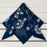 This "Indigo Bandana" from Kobashi Studio is made from Banshu-ori, a traditional fabric from Hyogo, Japan, with over 230 years of history. The 100% cotton fabric is exceptionally soft, absorbent, and displays a fine, vibrant texture.