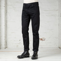 The high-quality 14oz selvedge denim comes from Wakayama, Japan, and features a unique color: Sulphur Dyed Black. Similar to classic indigo jeans, this fabric develops a unique patina over time – the deep black color slowly fades, taking on a unique depth of character that evolves with each wear and wash.