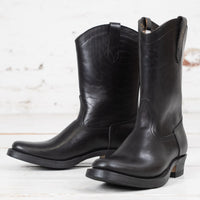 ROLLING DUB TRIOS Westernstiefel „LORO“ entsteht aus einem einmaligen Horsebutt Leather – einem der dichtesten und charakterstärksten Leder überhaupt. Es stammt aus dem festen Bereich der Hinterpartie des Pferdes – dort, wo die Fasern besonders kompakt sind und das Material seine außergewöhnliche Haltbarkeit und Tiefe entwickelt.
