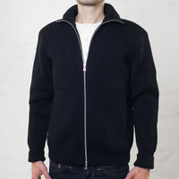 The "Navy Full-Zip Cardigan" by Andersen-Andersen is knitted from heavy " Pure New Wool" and is inspired by sailors' clothing. The pure new wool from Patagonia is carefully cleaned in Italy and then combed. Short fibers are thus removed and an additional twist of the yarn ensures greater density and durability, the shape of the cardigan remains the same when worn . The heavy knit, the high quality and the timeless, simple design make the cardigan the perfect companion for autumn and winter.