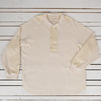 - HNCS-2004 Wool Cotton Waffle Henley Neck T-Shirts Natural