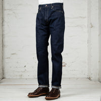 Gefertigt aus kernigem One-Wash 13,5oz Selvedge Denim mit lebendiger Struktur. Der Stoff entsteht auf alten Shuttle-Webstühlen in Japan – aus unterschiedlich dicken Garnen und unter geringer Spannung gewebt.
