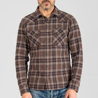 IHSH-431-BRN Slubby Heavy Flannel Check Western Shirt Brown