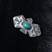 "Lil Thunderbird Pin Turquoise" aus massivem Sterling Silber mit handgestempeltem, Native American inspiriertem Design.