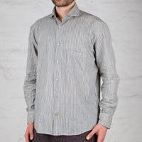 Das Windsor Collar Shirt von Orgueil kombiniert amerikanische Tradition mit japanischer Qualität. Der Stil des Hemdes ist inspiriert vom Stil der amerikanischen Arbeiterkleidung. Der hochwertige Baumwollstoff wird auf traditionellen Webstühlen in Japan gefertigt, um eine einzigartige Struktur zu erreichen. Indigo gefärbte, feine Streifen geben dem Hemd einen klassischen Look. Die Kleidung von Orgueil hebt sich klar von der üblichen Massenware ab und lässt sich zudem hervorragend mit Selvedge Denim kombinieren.
