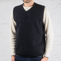 Die „4 Buttons Vest“ aus 100 % Merinowolle entstand in Zusammenarbeit mit dem italienischen Maler und Strickdesigner Max Rohr. Seine Entwürfe sind von Vintage-Originalen inspiriert und schlagen die Brücke zwischen klassischem Handwerk und moderner Stricktechnik. Minimalistisch im Ausdruck, hochwertig in der Ausführung und konsequent nachhaltig gedacht.